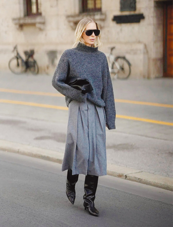@atti.present추운 겨울 스커트를 멋스럽게 소화하기 위해서는 따질 게 한두 가지가 아니다. 트렌드를 빨리 캐치하는 민첩함, 자신의 체형에 맞는 스타일을 찾아내는 예리함 등이 필요하다. 그중 가장 중요한 건 조합이다. 아무리 단조로워도 함께 스타일링했을 때 시너지 효과를 발휘하는 아이템들이 있기 때문. 이는 유독 ‘멋’에 민감한 패션 피플들이 겨울만 되면 스커트와 부츠를 찾는 이유다.
