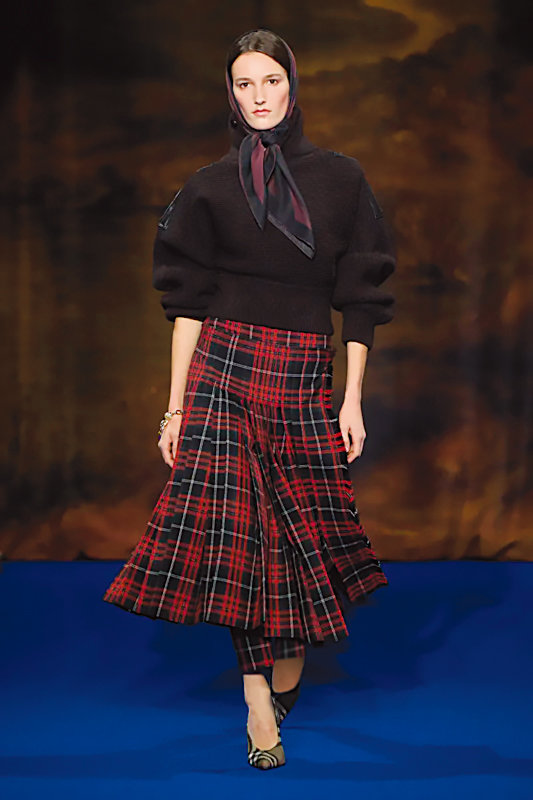 사진출처 버버리겨울철 바지와 레이어드하기 가장 무난한 패턴은 체크다. 체크 패턴은 두툼한 소재로 이뤄진 겨울 룩에 경쾌한 분위기를 한 스푼 얹어준다. 게다가 특유의 차분함과 클래식함으로 계절감까지 강조할 수 있다. 체크 스커트를 바지 위에 손쉽게 레이어드할 수 있는 방법은 톤온톤 매치다. 바지와 비슷한 컬러의 스커트를 선택하면 자연스러우면서도 깊이 있는 룩이 완성된다. 좀 더 개성 있게 소화하고 싶다면 타탄 미디스커트에 같은 패턴의 시가렛 팬츠를 착용한 버버리 룩을 참고해도 좋겠다. 실크 니트와 펌프스를 더하면 고급스러움을 배가시킬 수 있다.