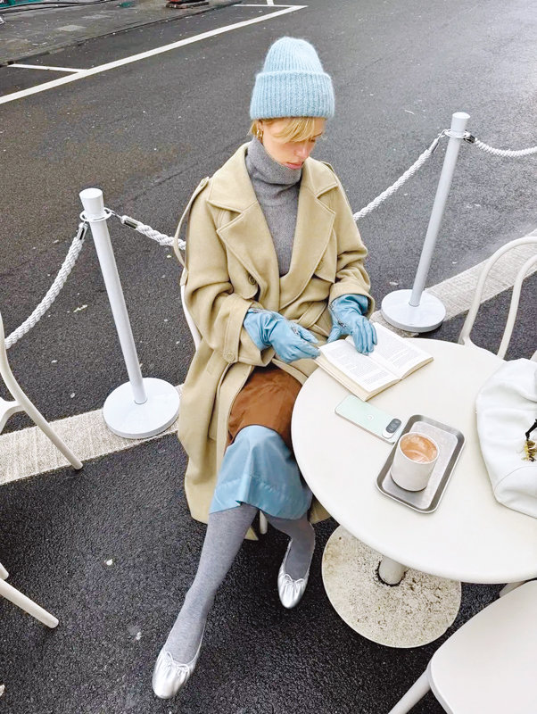 @yanaiww무채색 계열의 스커트를 즐긴다면 컬러 스타킹으로 힘을 줘도 좋겠다. 컬러 스타킹으로 룩에 포인트를 준 인플루언서들의 레퍼런스가 넘쳐난다. 이들의 공통점은 미니스커트를 적극 활용했다는 점. 블랙이나 그레이 컬러의 미니스커트에 알록달록한 스타킹을 매치한 뒤, 드러난 다리를 롱 코트로 감싸는 방식으로 실용성과 멋을 입혔다. 플랫 슈즈나 펌프스 힐, 부츠로 마무리하면 어떤 상황에든 어울리는 만능 룩이 완성된다. 클래식한 무드를 연출하고 싶다면 치마와 비슷한 톤의 스타킹을, 분위기 반전을 원한다면 네온·비비드 등 튀는 컬러를 활용하자. 이때 액세서리는 최대한 덜어내고 어두운 톤의 신발을 매치해야 과해 보이지 않는다.