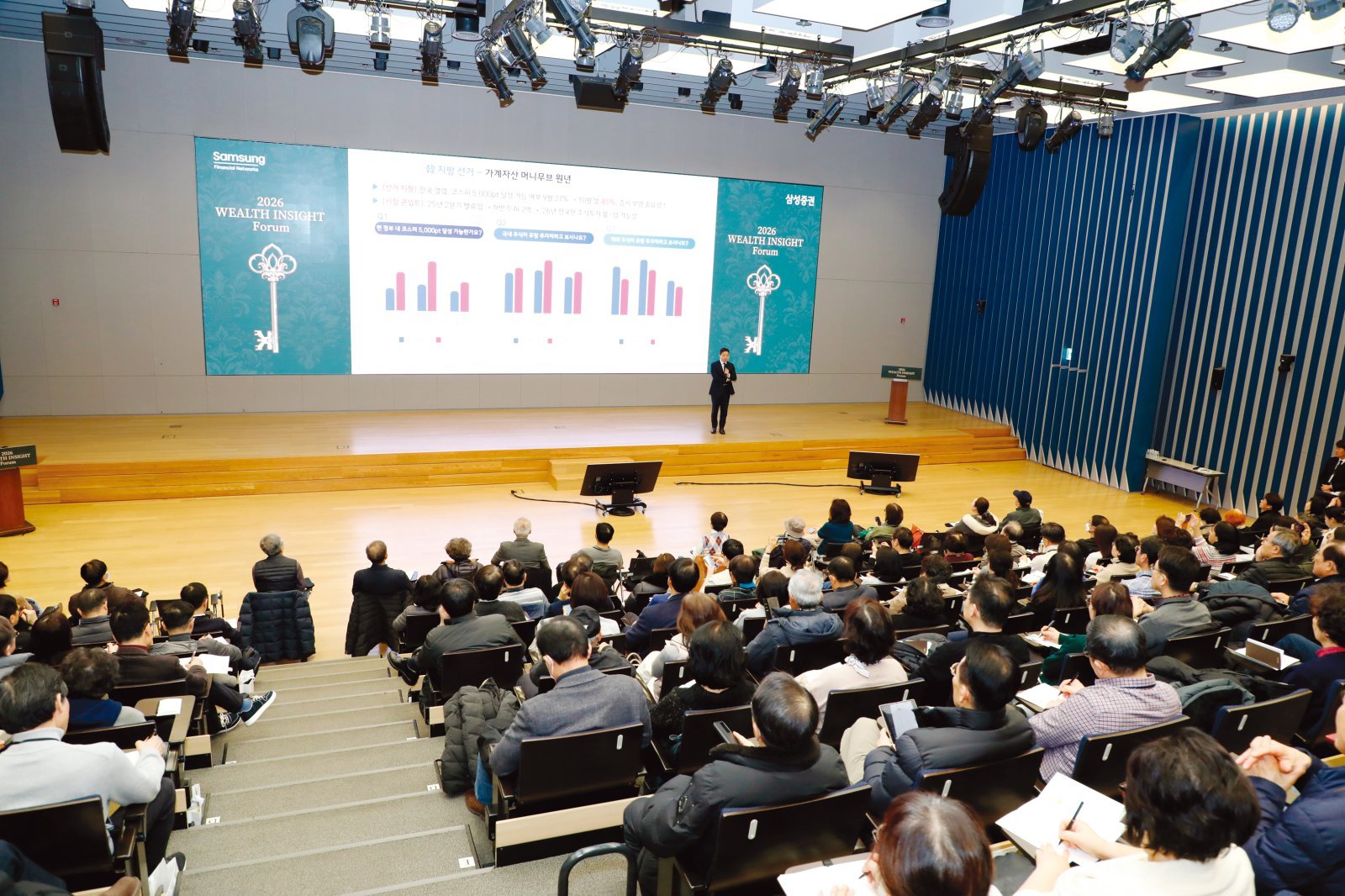 삼성증권이 서울 서초동 삼성금융캠퍼스 비전홀에서 예탁자산 10억 원 이상 우수고객 300여 명을 초청해 ‘Wealth Insight Forum’을 열었다. 삼성증권 제공최근 초고액자산가 시장의 패러다임이 개인의 자산 관리뿐 아니라 ‘세대 간 자산 이전’으로 확대되는 추세다. 이런 분위기에 발맞춰 삼성증권은 1월 14일 서울 서초동 삼성금융캠퍼스 비전홀에서 예탁자산 10억 원 이상 우수고객 300여 명을 초청해 ‘Wealth Insight Forum’을 열었다.