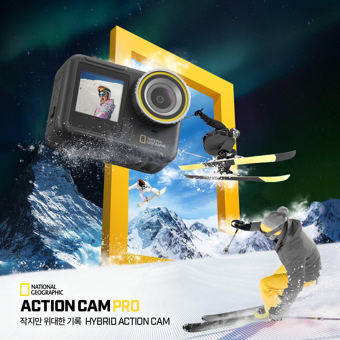 내셔널지오그래픽 액션캠 프로는 전방과 후면에 듀얼 LCD를 탑재해 촬영 중에도 결과물을 실시간으로 확인할 수 있다. 152도 초광각 앵글로 사람의 시야와 유사한 영상을 촬영한다. 뿐만 아니라, 해당 제품은 1800mAh 교체형 배터리를 장착해 205분 동안 녹화가 가능하며, USB-C 타입을 이용해 보조 배터리를 연결하면 더 긴 촬영도 가능하다.