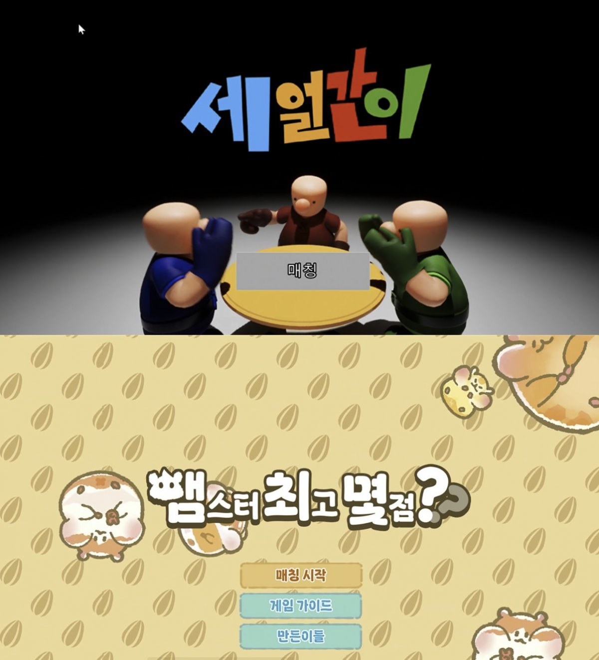 언리얼 팀과 유니티 2팀의 게임(자료 출처-게임동아)세 번째로 다시 유니티 2팀이 발표를 시작했는데, 이번에는 귀여운 햄스터가 등장하는 게임이 등장했다. 유명한 수박게임 형식인데, 이걸 멀티로 즐기는 형태였다. 시연 버전을 보니 같은 캐릭터를 합치는 머지 기능과 대결을 섞은 게임으로, 더 큰 햄스터를 만들어서 상대편을 공격하는 게임이었다.
