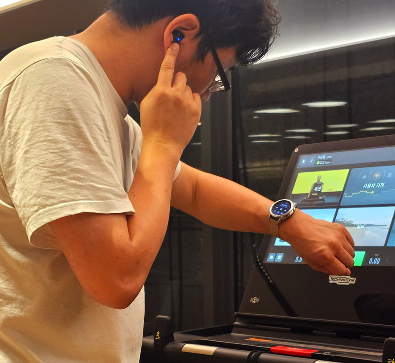 운동을 하며 갤럭시워치로 음악 감상을 하는 모습 / 출처=IT동아