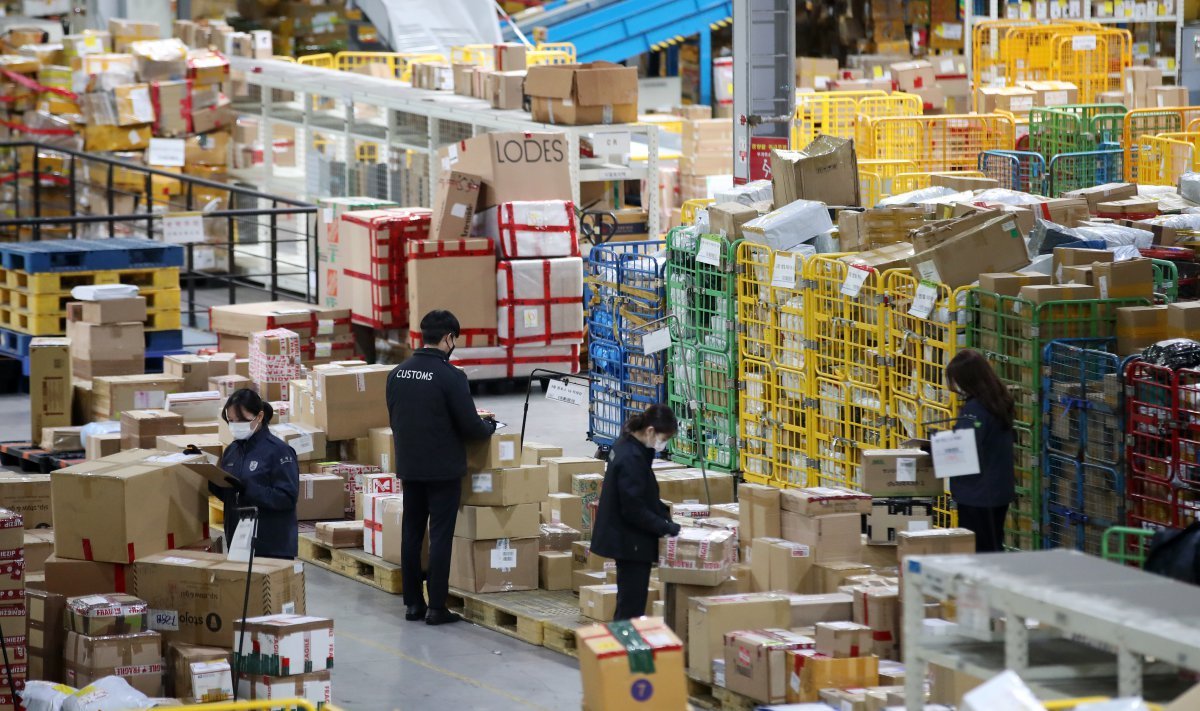 20일 오전 인천 중구 인천공항 본부세관 특송물류센터에서 직원들이 물품 검사를 하고 있다. 2024.11.20/뉴스1 ⓒ News1 이승배 기자