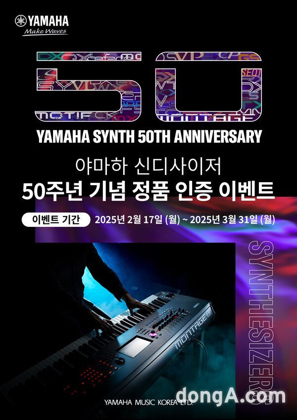 이번 행사는 혁신적인 성능과 디자인으로 반세기에 걸쳐 뮤지션들의 사랑을 받아온 야마하의 신디사이저 출시 50주년을 기념하기 위해 준비됐다. 2024년 9월부터 행사가 종료되는 3월 31일까지 야마하 신디사이저, 스테이지 피아노 및 건반 모델을 구매한 고객들은 누구나 참여할 수 있다.
