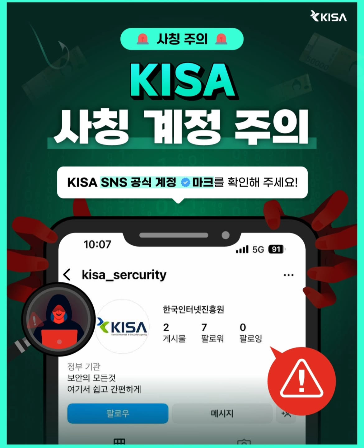 ‘공식 계정’ 확인해야…KISA는 SNS로 개인정보 요구하지 않아