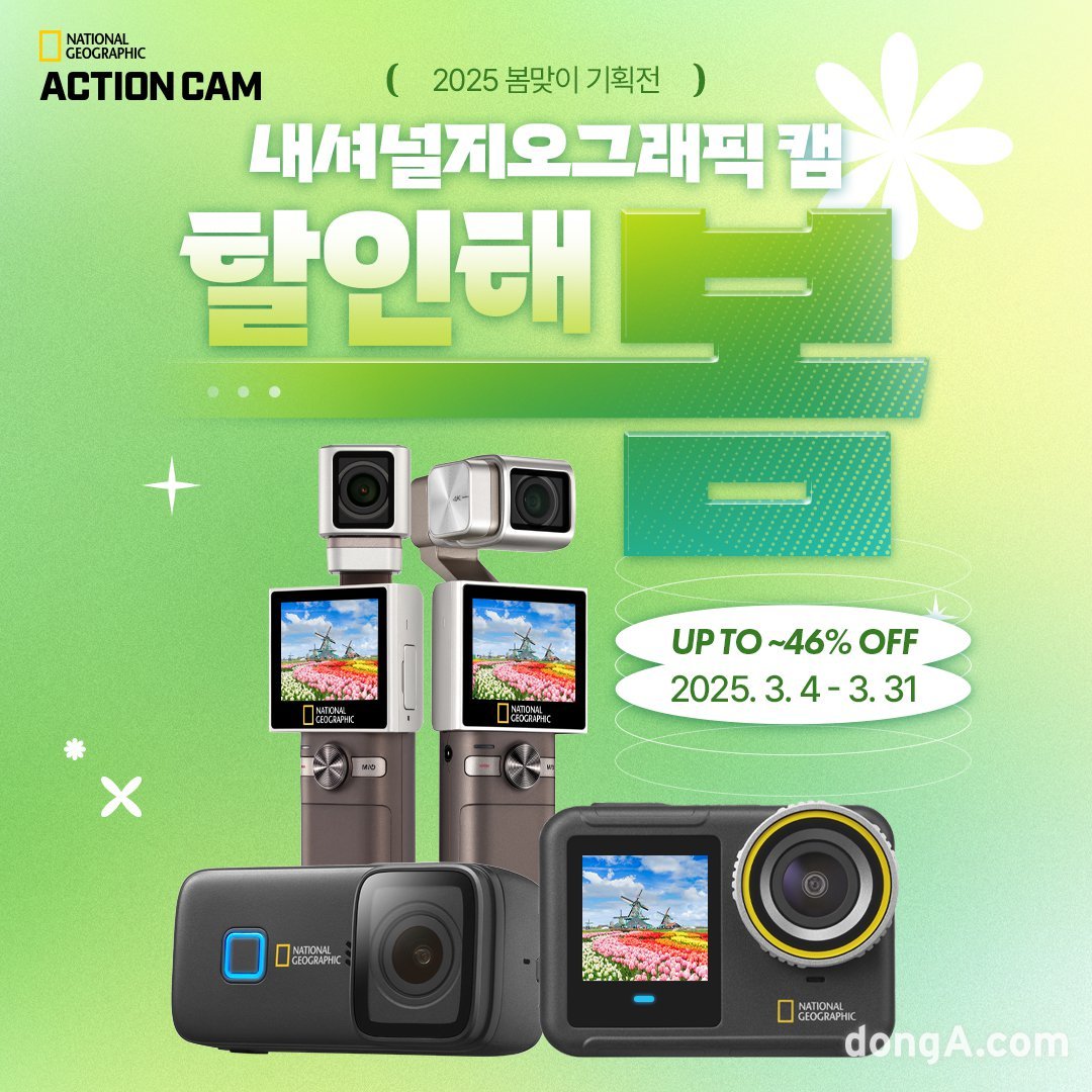 또한, 내셔널지오그래픽 액션캠 구매 고객에게는 액션캠 전용 삼각대를 증정한다. 추가로, 액션캠 구매 후 포토 리뷰를 작성하면 32GB 메모리 카드를 사은품으로 받을 수 있다. 모든 제품 구매 후 포토 리뷰를 작성한 고객에게는 핸드폰 케이스 및 맥세이프 액세서리를 30% 할인받을 수 있는 디자인스킨 쿠폰을 제공한다.정진수 동아닷컴 기자 brjeans@donga.com