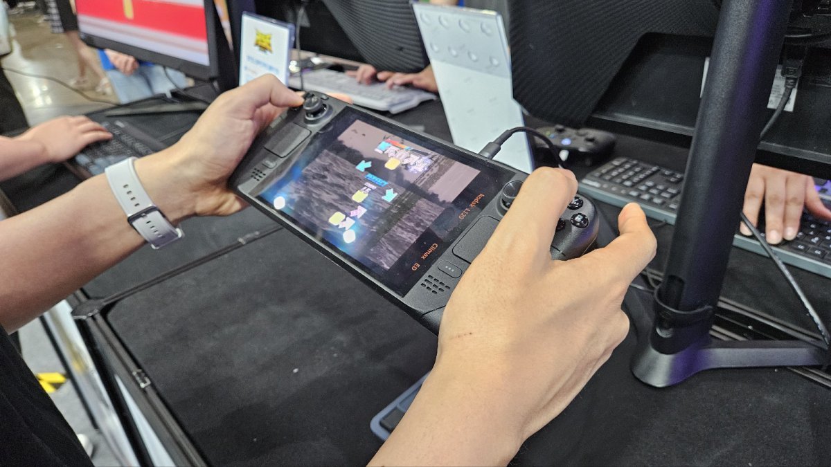 펌프잇업 스팀덱 실기(자료 출처-게임동아)실제로 안다미로 부스에 가보니, 플라스틱 재질로 만들어진 전용 컨트롤러가 눈에 들어왔다. 양손에 패드를 쥐고 플레이하는 분들도, 그리고 옆에서 키보드로 즐기는 관람객들 모두 만족스럽다는 답변을 내놨다. 아니나 다를까, ‘펌프잇업’ 신작이라는 이유만으로도 이미 많은 이들이 줄을 서서 게임을 체험해 보려 애쓰는 모습이 인상적이었다.