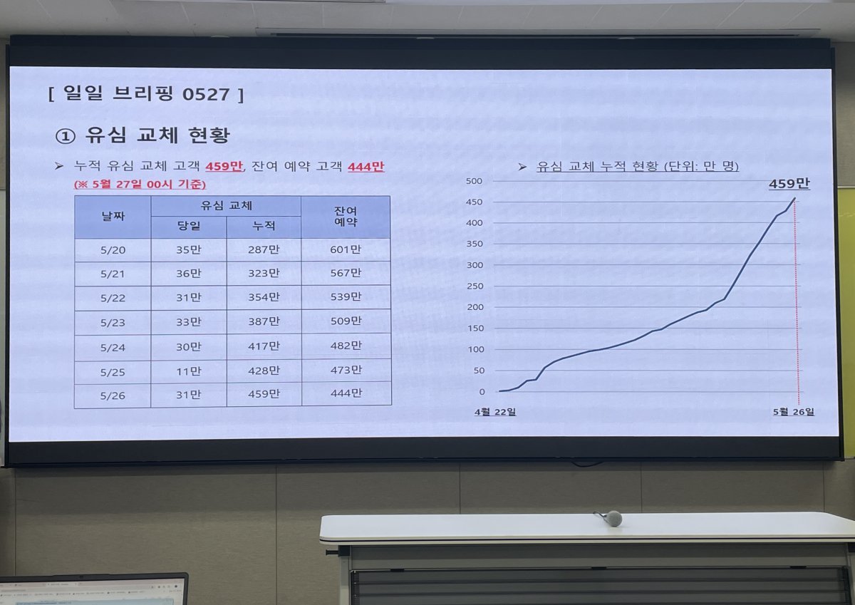 SK텔레콤이 459만명의 유심 교체를 끝냈다. 남은 교체 예약자는 444만명이다.