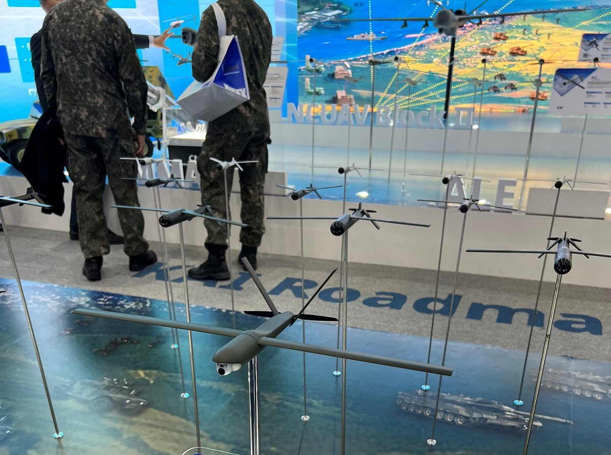KAI KF-21과 무인기 모형우리 군도 작년 5월 현행 소형 무인기 전력을 내년까지 2배 이상 확대하겠다는 계획을 발표한 바 있다. 이와 함께 적군 소형 무인기를 무력화할 드론 방어체계 확보 필요성도 높아지는 추세다.