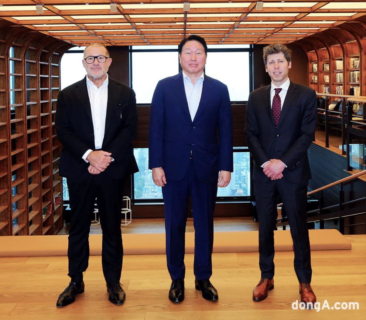 최태원 SK그룹 회장(가운데)과 샘 올트먼 오픈AI CEO(오른쪽), 조나단 아이브 오픈AI 크리에이티브헤드(Creative Head) (왼쪽)가 1일 서울 종로구 SK서린빌딩에서 기념촬영을 하고 있다.이에 따라 SK하이닉스는 D램 웨이퍼 기준 월 최대 90만 장 규모 HBM 공급 요청에 적기 대응할 수 있는 생산체제 구축에 나선다. 오픈AI가 요청한 HBM 공급 규모는 웨이퍼 기준 현재 전 세계 HBM 생산능력의 2배가 넘는 수준이라고 한다. 스타게이트 프로젝트가 창출할 막대한 반도체 수요를 방증한다. 이와 함께 오픈AI의 AI가속기(GPU) 확보 전략에도 적극 협력하고 향후 협업 분야를 지속 확장하기로 했다.