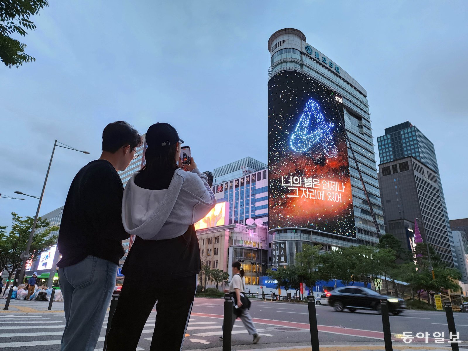 나: 야야, 광화문 사거리에 바로 앞에 엄청 큰 전광판 생겼더라. 혹시 그거 봤어?
