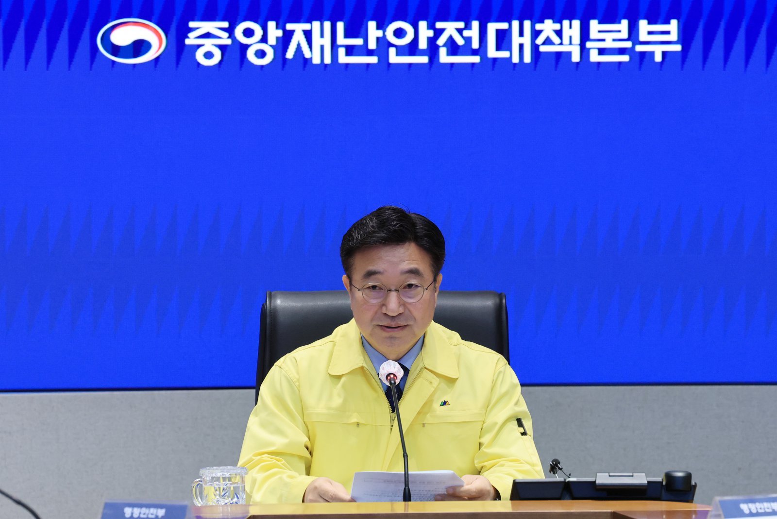 윤호중 행정안전부 장관이 20일 서울 종로구 정부서울청사 중앙재난안전상황실 서울상황센터에서 열린 국가정보자원관리원(국정자원) 행정정보시스템 화재 관련 중앙재난안전대책본부 회의에서 발언을 하고 있다. 뉴스1