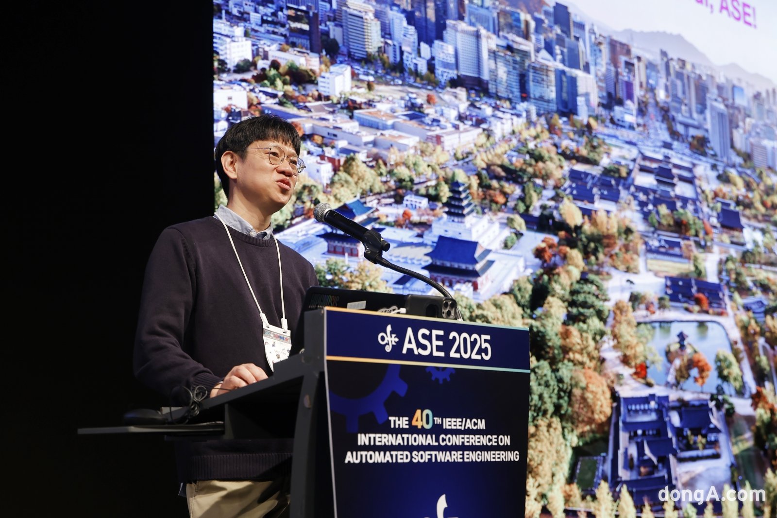 ASE 학회 조직위원장을 맡은 유신 카이스트 교수가 개회사를 하고 있다. 조직위원회 제공.세계적인 소프트웨어공학 학술대회인 ‘ASE 2025(The 40th IEEE/ACM International Conference on Automated Software Engineering)’가 이달 16일 서울 광진구 그랜드워커힐에서 개최돼 오는 20일까지 열린다.