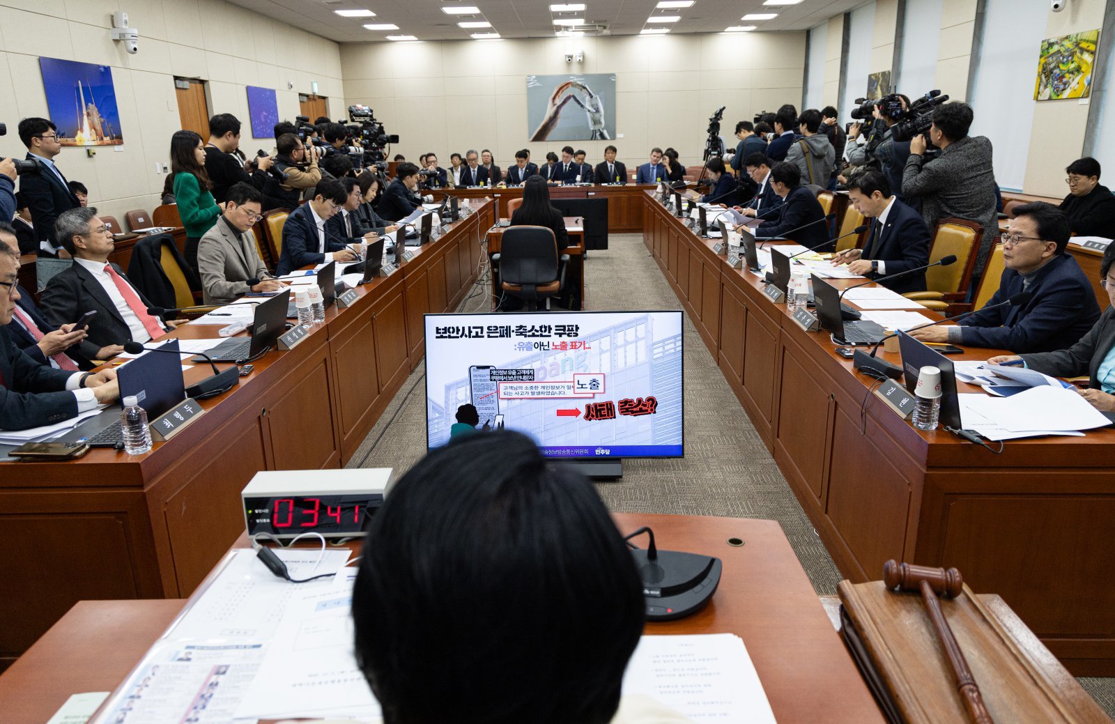 국회 과학기술정보방송통신위원회는 이날 전체회의를 열고 3300만 개가 넘는 계정 정보가 유출된 경위에 대해 추궁했다.