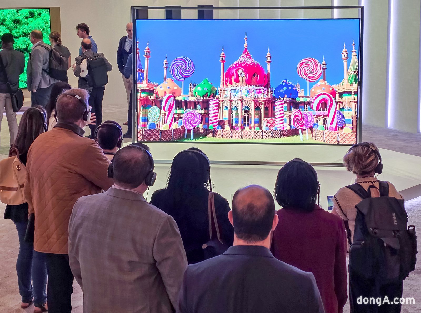 삼성전자가 미국 라스베이거스 CES 2026에서 세계 최초로 공개한 130형 ‘마이크로 RGB TV’를 관람객들이 살펴보고 있다.세계 최초 130인치 마이크로 RGB TV 공개