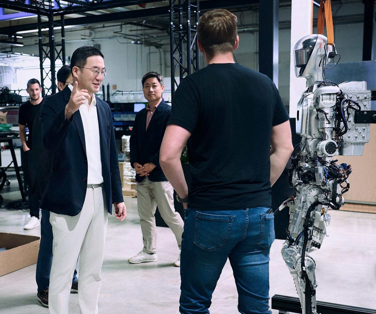 구광모 LG그룹 회장(왼쪽)지난 2020년 구 회장은 그룹 차원 AI 싱크탱크인 LG AI연구원을 설립하면서 LG AI연구원이 최고의 인재와 파트너들이 모여 세상의 난제에 마음껏 도전하면서 글로벌 AI 생태계 중심으로 발전하도록 지원하겠다고 밝힌 바 있다.