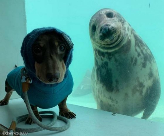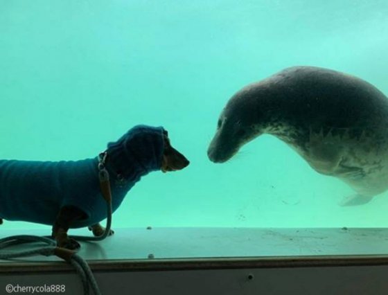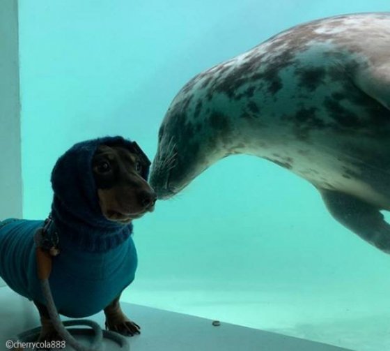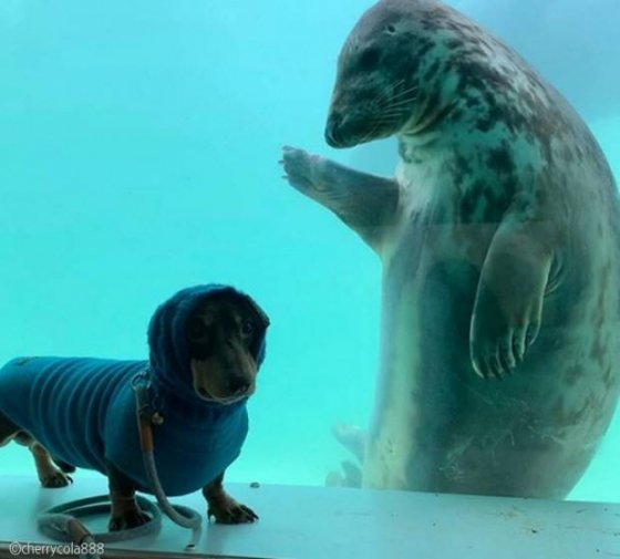 지난 3일(현지 시간) 온라인 미디어 보어드판다는 처음 본 닥스훈트에게 마음을 빼앗긴 바다표범을 소개했다.