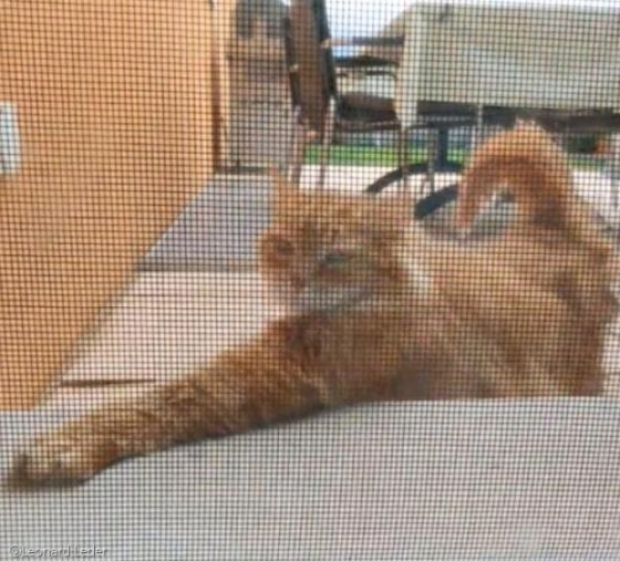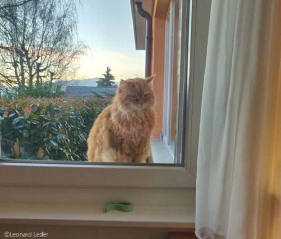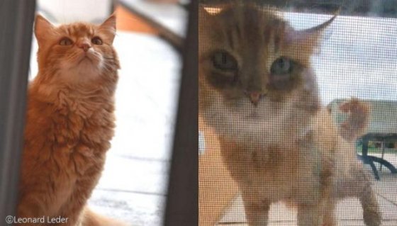 가장 가까운 곳에 살고 있는 이웃 레너드 레더의 집에 놀러 간 녀석은 인사를 하기 위해 창문 앞에서 기웃거렸다.