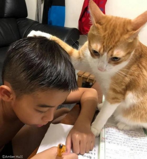 지난 8일(현지 시간) 대만 고양이 전문 매체 캣시티는 꼬마 집사의 숙제를 감독하는 고양이 선생님 '쥬지'를 소개했다.