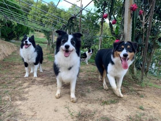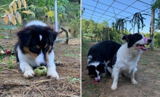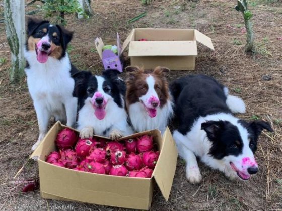 대만에 사는 보더콜리 반려견 ‘켈리’와 오스트레일리언 셰퍼드 반려견 ‘키이라’는 지난 8월말 ‘라파엘’, ‘모코’와 함께 용과 농장에서 수확한 용과를 지키는 임무를 맡았다.