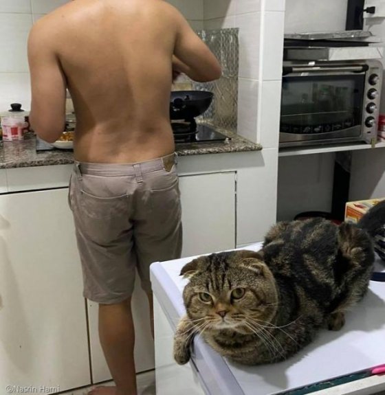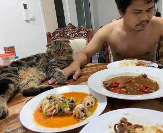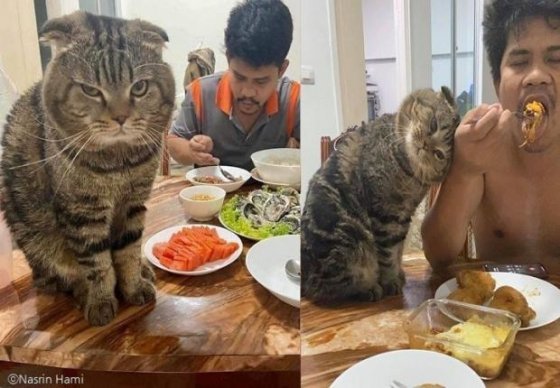 나스린은 더보어드판다와의 인터뷰에서 "자비스는 고양이 사료만 먹을 뿐 사람 음식을 먹어본 적은 없다"며 녀석이 식사하는 남편의 곁을 지키는 건 음식을 얻어먹기 위해서가 아니라고 말했다.