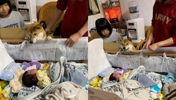 "너무 귀엽개!"..아기 주인과 첫 만남에 함박웃음 지은 시바견
