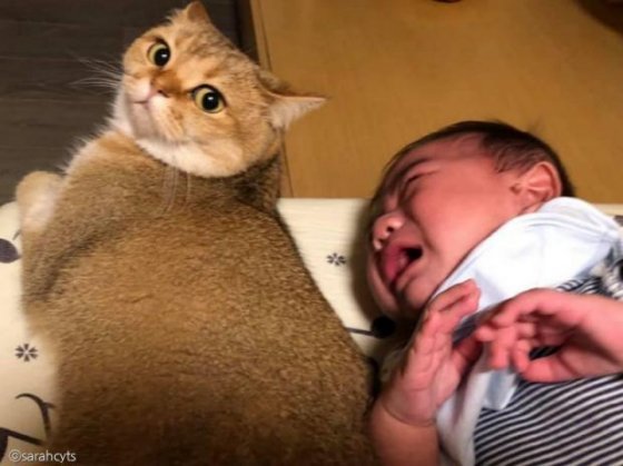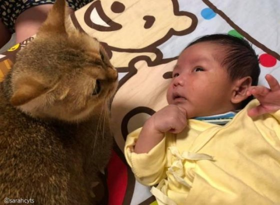 5일(현지 시간) 홍콩 매체 hk01은 아기 집사가 울자 자기가 가장 좋아하는 사료를 가져다준 고양이 '위안위안'을 소개했다.