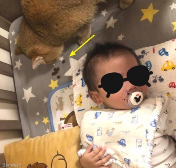 무엇 때문에 그러는지 궁금해진 사라는 아기 침대 쪽으로 갔다가 깜짝 놀랐다.