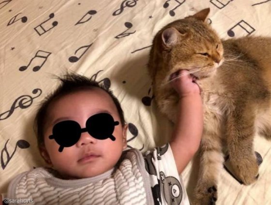 첫 반려묘인 위안위안이 3살이 됐을 때 사라는 임신을 했고 곧 아들을 낳았다.