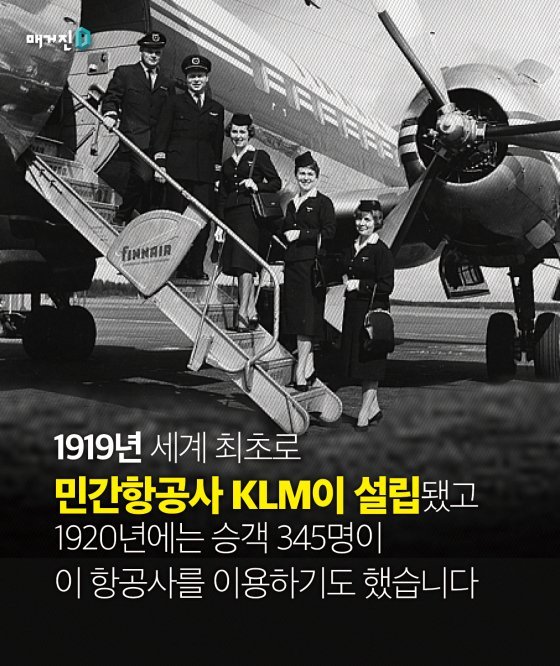 1919년 세계 최초로 민간항공사 KLM이 설립됐고