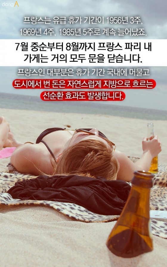 프랑스는 유급 휴가 기간이 1956년 3주, 1969년 4주, 1985년 5주로 계속 늘어났죠.