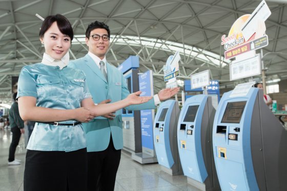 공항 내 탑승권 자동발급기인 ‘키오스크(Kiosk)’를 이용하면 짧은 시간 안에 탑승 수속을 마칠 수 있다. 인천공항 국제선 대한항공 카운터 주변 및 F 카운터 셀프 서비스존에는 대한항공 승객을 위한 키오스크가 마련돼 있다. 김포공항 국제선 대한항공 카운터 주변에도 키오스크가 마련돼 있으며, 대한항공 승객이라면 김해, 제주, 여수 공항에서도 키오스크를 통해 셀프체크인이 가능하다. 위탁수하물이 있는 경우에는 셀프체크인 수하물 전용카운터를 통해 손쉽게 짐을 보낼 수 있다. 인천공항에서는 일반석 승객을 대상으로 위탁수하물을 승객이 직접 처리할 수 있는‘자동수하물위탁(Self Bag Drop)’ 코너도 운영 중이다.