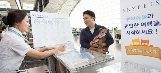 지난해 대한항공으로 반려동물과 함께 여행한 승객은 약 2만5000명으로, 전년 대비 50% 증가했다. 대한항공은 반려동물 동반 여행객에게 더욱 나은 혜택을 제공하고자, 스카이펫츠(SKYPETS) 서비스를 개시했다. ‘스카이펫츠’ 서비스는 반려동물 동반 여행 횟수에 따라 스탬프를 부여, 모인 스탬프 개수에 따라 반려동물 운송 무료·할인 보너스를 제공하는 고객 우대 프로그램이다. 동반 항공여행이 가능한 반려동물은 개, 고양이, 새이며 대한항공 홈페이지에서 등록 후 서비스를 이용하면 된다.