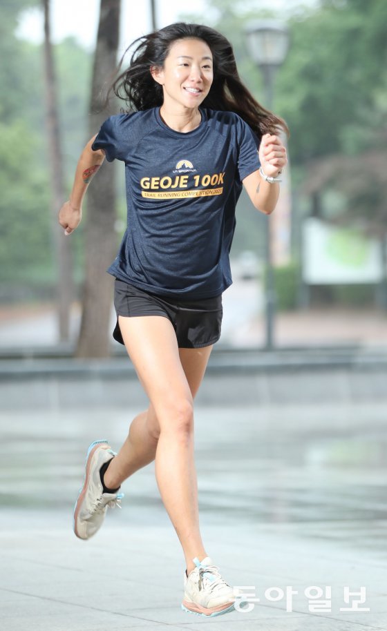 장 씨는 국내 트레일러닝에서 신흥강자로 떠올랐다. 지난해 7월 열린 성남누비길 64k에선 11시간 32분 12초로 여자부 2위를 했다. 올 4월 열린 서울 울트라 랠리 22km에서는 3시간 18분 41초로 여자부 정상에 올랐다. 4월 말 열린 코리아 50k 52.5km에서 8시간 34분 1초로 3위를 했고 거제 100km에서 다시 정상에 오른 것이다.