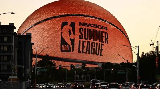 사실 이건 전면에 LED 스크린이 설치된 대형 공연장입니다. 높이 약 120미터, 지름 160미터로 세계에서 가장 큰 구형 건축물로 알려진 라스베이거스의 명물 ‘스피어(Sphere)’는 올해 완공돼 매일 새로운 영상을 재생하며 변화무쌍한 모습을 보여주고 있습니다. 올 여름 미국프로농구(NBA) 서머리그를 앞두고는 대형 농구공으로 변신해 이목을 끌기도 했습니다.