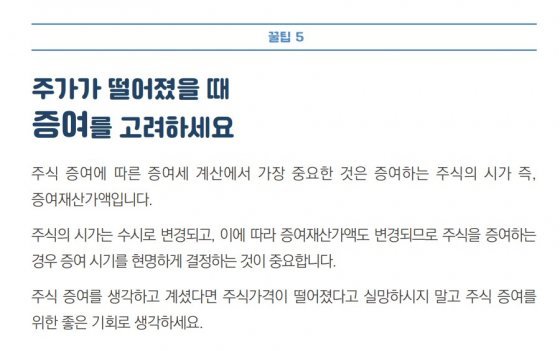 국세청은 증여를 계획하고 있다면 세금 부담 측면에서는 주가가 내려갔을 때 오히려 좋은 기회라는 점 등도 함께 소개했는데요.