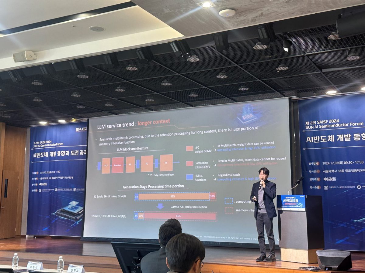 임의철 SK하이닉스 펠로우 / 출처=IT동아AI 반도체 개발 동향 및 미래 전략을 주제로 ▲김정욱 딥엑스 부사장 ▲백준호 퓨리오사AI 대표 ▲임의철 SK하이닉스 펠로우 ▲정무경 ㈜디노티시아 대표 ▲이진원 하이퍼엑셀 CTO ▲손교민 삼성전자 마스터가 발표했다. 이어 AI 반도체 연구 개발(R&D) 동향으로 ▲안정호 서울대 융합과학기술대학원 교수 ▲전동석 서울대 융합과학기술대학원 교수 ▲이진호 서울대 전기정보공학부 교수가 발표했다.