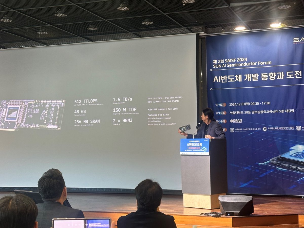 서울대학교가 12월 3일 글로벌공학교육센터에서 ‘인공지능(AI) 반도체 개발 동향과 도전 과제’를 주제로 제2회 ‘SAISF(SNU AI Semiconductor Forum) 2024’을 개최했다. 올해 2회를 맞는 이 포럼은 서울대학교 AI 반도체 대학원이 그간 성과를 공유하고, 반도체 대기업 및 스타트업의 기술 개발 동향을 공유하는 장이다.