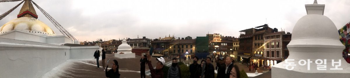 네팔 수도 카트만두 도심 저 너머로 히말라야 설산이 보인다. 카트만두=민동용 mindy@donga.com보다나트 스투파에서 사람들은 탑을 시계 방향으로 돈다. 보다나트의 ‘보다’는 깨달음이라는 뜻이다. 깨달음이 쉽지 않기에 기도하고, 간구하고, 생각을 떨쳐내고 경전이 든 원통인 마니차를 손으로 돌리며 걷는다. 탑돌이는 “중심으로 들어가는 행위가 아니라 주변을 걸으며 중앙에서 나오는 성스러운 에너지를 받아들이고 느끼는 동작”이다.(‘히말라야의 맹주 네팔 히말라야―카트만두 편’·임현담 지음·종이거울·2016년)
