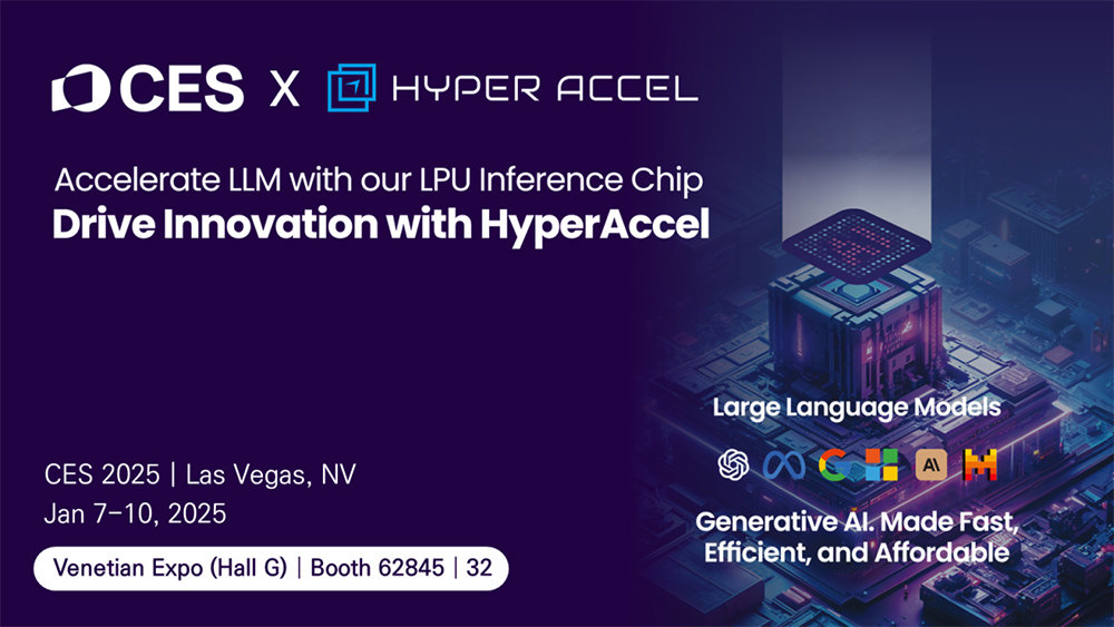 하이퍼엑셀은 창업 5년 이내 스타트업 전용관인 ‘유레카 파크’가 위치한 라스베이거스 베이션 엑스포 홀 G의 62845에 부스를 차리고, 초거대 AI에 특화된 LPU(Latency Processing Unit)를 선보인다. LPU는 대형언어모델(LLM) 등 생성형 AI 활용 및 추론에 특화된 설계가 적용된 AI 반도체로, 자체 개발한 모델 병렬화 기술과 메모리 대역폭을 끌어올린 설계를 통해 LLM 연산에 강점을 보인다. 하이퍼엑셀은 LPU 칩 기술뿐만 아니라 생성 AI 전용 서버 제품 ‘오리온 서버’ 및 LPU 실리콘 지적재산(IP) 등도 함께 선보일 예정이다.