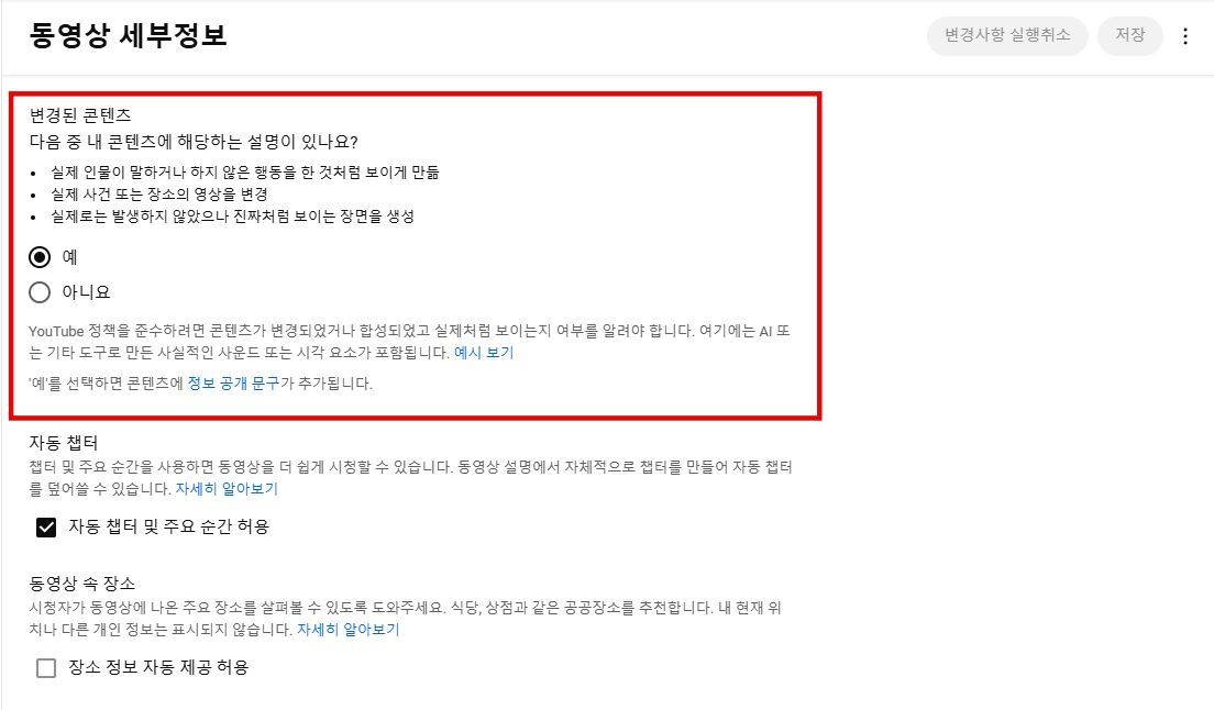 유튜브는 AI 생성물을 구분하기 위해 AI로 만든 콘텐츠를 업로드할 경우, 정보 공개 문구를 추가하도록 한다 / 출처=IT동아