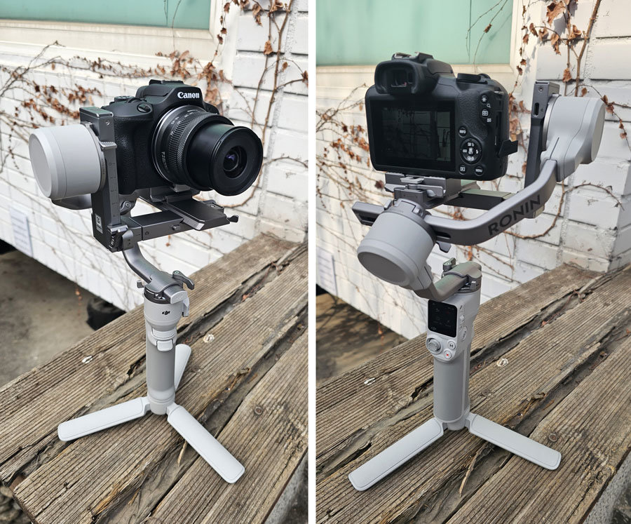 캐논 EOS R100 카메라와 결합한 ‘DJI RS 4 미니(DJI RS 4 Mini)’ 짐벌 / 출처=IT동아