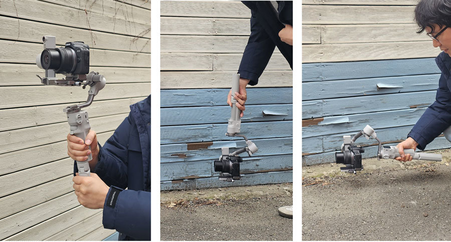 다양한 촬영각을 제공한다 / 출처=IT동아이런 견고함을 바탕으로 RS 4 미니는 다양한 촬영각을 제공한다. 일반적인 ‘업라이트 모드’ 외에 짐벌을 완전히 뒤집어서 지면의 물체를 촬영할 수 있는 ‘언더슬렁(매달기) 모드’, 짐벌이 손전등처럼 수평으로 고정되어 비좁은 공간 촬영에 유리한 ‘플래시라이트 모드’ 등이 대표적이다.