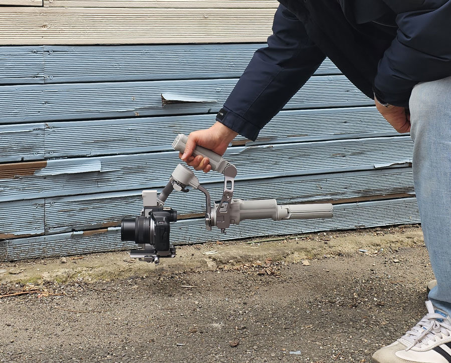 브리프케이스 핸들을 달면 좀더 편하게 낮은 앵글의 촬영을 할 수 있다 / 출처=IT동아그리고 RS 4 미니의 콤보 패키지를 구매했다면 ‘브리프케이스(서류가방) 핸들’이 함께 제공된다. 이를 짐벌에 달면 낮은 앵글의 촬영을 한층 손쉽게 할 수 있다.