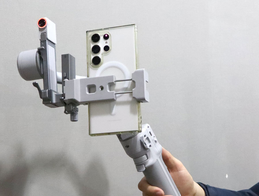 전용 홀더를 통해 스마트폰 장착도 가능하다 / 출처=IT동아카메라가 아닌 스마트폰 역시 RS 4 미니에 호환된다. 다만, RS 4 미니 기본 패키지에서 스마트폰을 장착하려면 스마트폰 홀더를 따로 구매해야 한다. RS 4 미니의 콤보 패키지의 경우는 스마트폰 홀더가 기본 제공되므로 퀵 릴리즈 플래이트에 바로 달 수 있다.