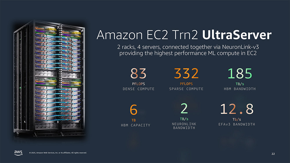 아마존이 자체 개발한 트레이니엄 2를 엮은 울트라서버 스펙 / 출처=AWS코리아