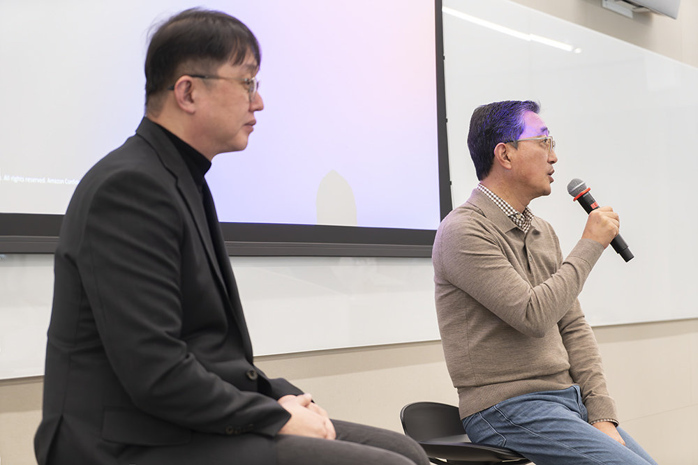 김기완 AWS 솔루션스 아키텍트 총괄(좌)과 함기호 AWS코리아 대표(우)가 질의응답을 받고 있다 / 출처=IT동아