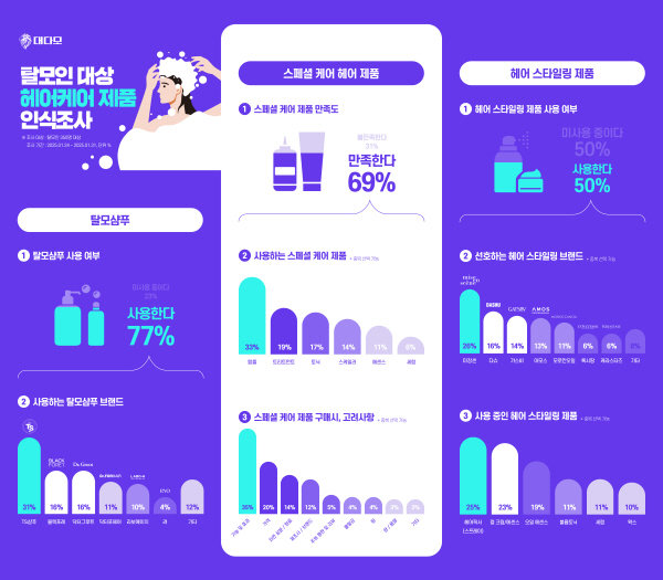 대다모, ‘탈모샴푸· 헤어케어 제품 사용만족도 및 선호도’ 설문조사 결과 발표