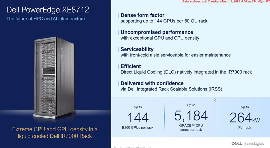 델 IR7000과 조합해 최대 144개의 엔비디아 GPU를 탑재할 수 있는 델 파워엣지 XE8712 서버 / 출처=델